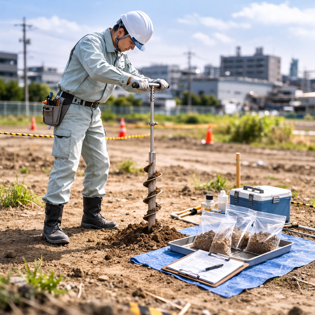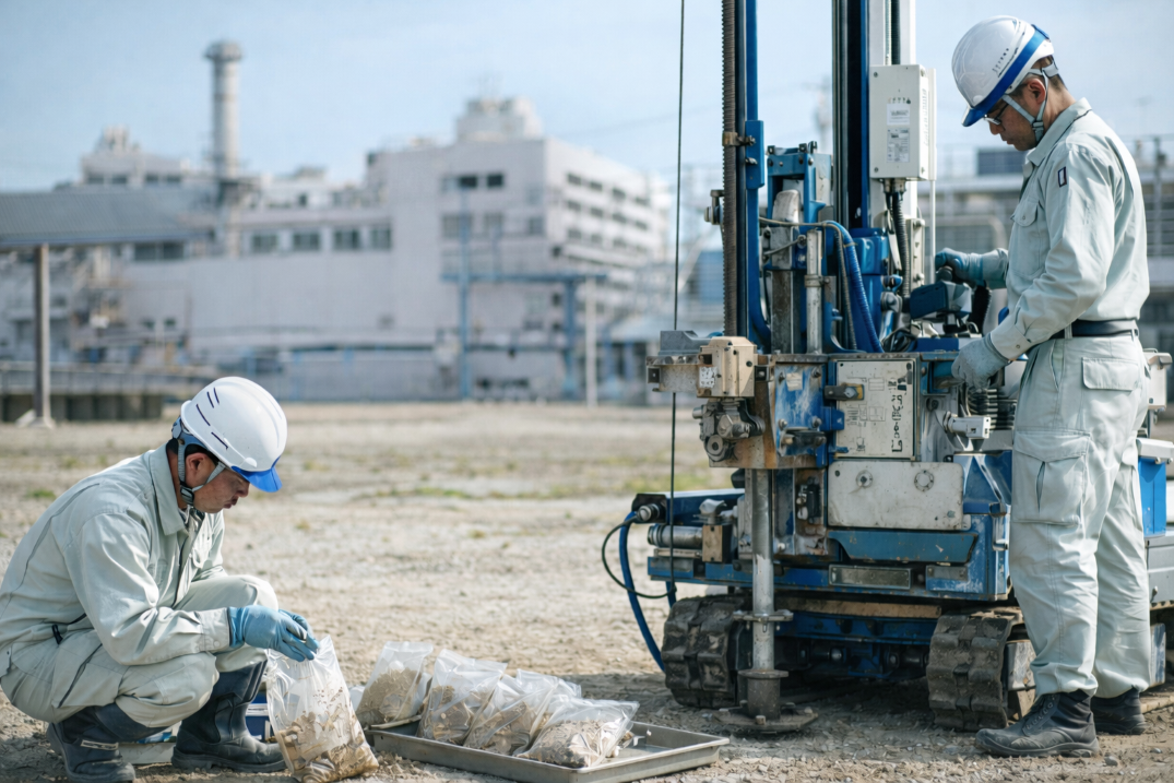 ・確認された土壌汚染について対策を講じる場合は、詳細な汚染土壌の存在範囲を把握するためにボーリングによって深度方向の調査を行います。地下水が確認された場合は、地下水汚染の有無も調査します。